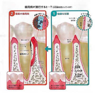 こんにちは。山形市落合町の江良歯科医院です。「歯周病が進むと“歯を支える組織”...