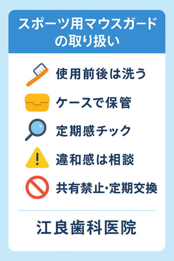 A. スポーツ用マウスガードは**保険適用外(自費)**が一般的です。費用は材質や設計で異なるため、来院時に詳しくご説明します。